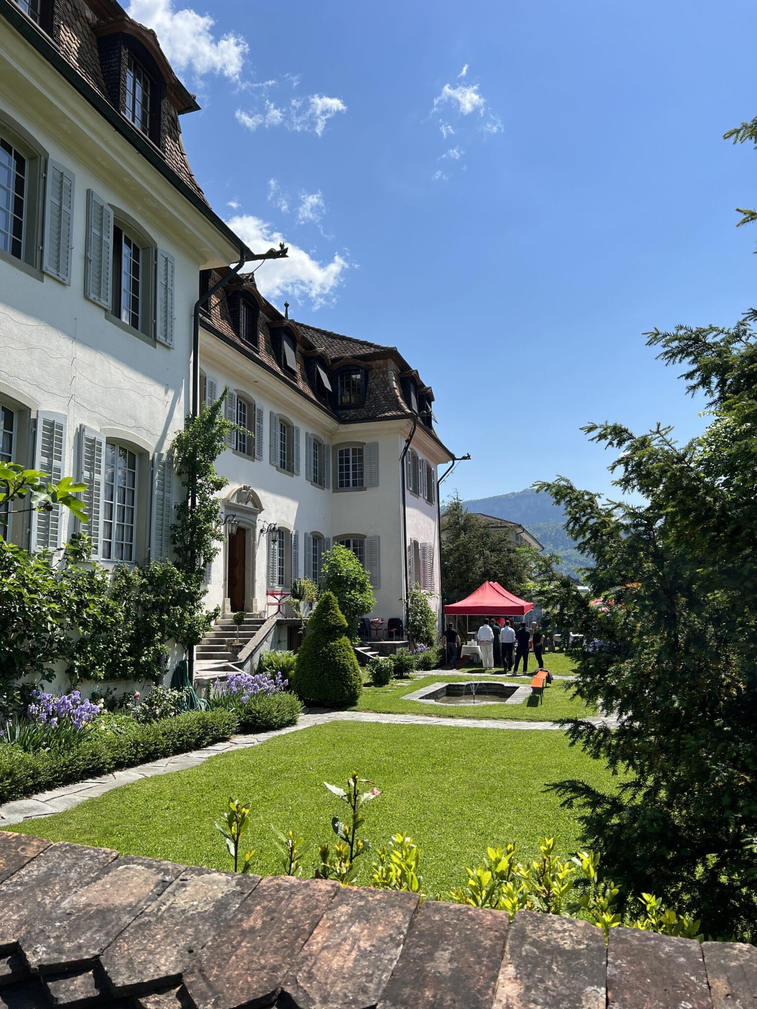 Nachdem das letzte Treffen im 2019 bei der Elektrizitätswerk Schwyz AG in Ibach stattfand, erhielt die Gemeinde Schwyz in diesem Jahr Gastrecht bei uns der BSS Unternehmung AG in Schwyz. Zum Einstieg gab Urs Strüby, Geschäftsleitung der BSS Architekten AG, in seinem Referat einen Einblick in die aktuellen Projekte des Unternehmens. Der anschliessende Apéro und das Mittagessen konnten bei strahlendem Sommerwetter im Garten des geschichtsträchtigen Palais Friedberg genossen werden. Dabei stand der Austausch zwischen den politischen Entscheidungsträgern und den Vertreterinnen und Vertretern der grösseren Unternehmen in der Gemeinde Schwyz im Zentrum.