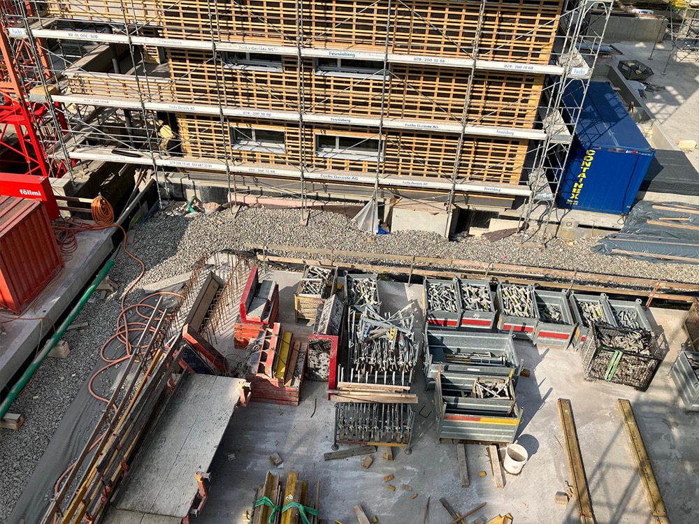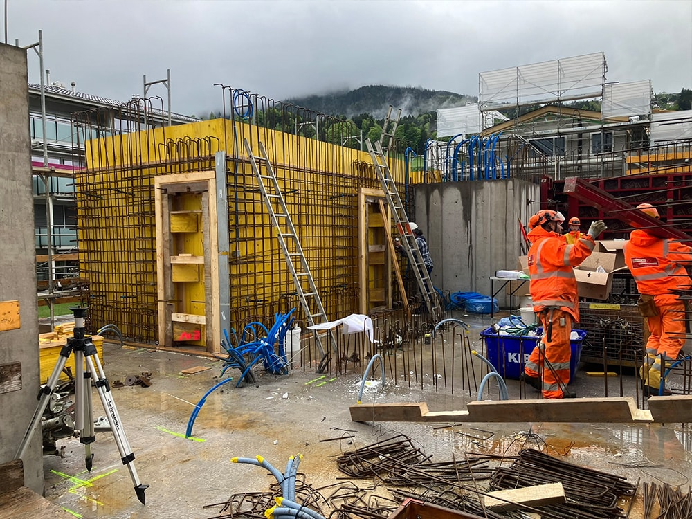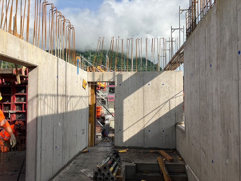 Die erste Etappe der Tiefgaragendecke wurde armiert und am Montag betoniert. Die zweite ist auf Dienstag nächste Woche geplant.