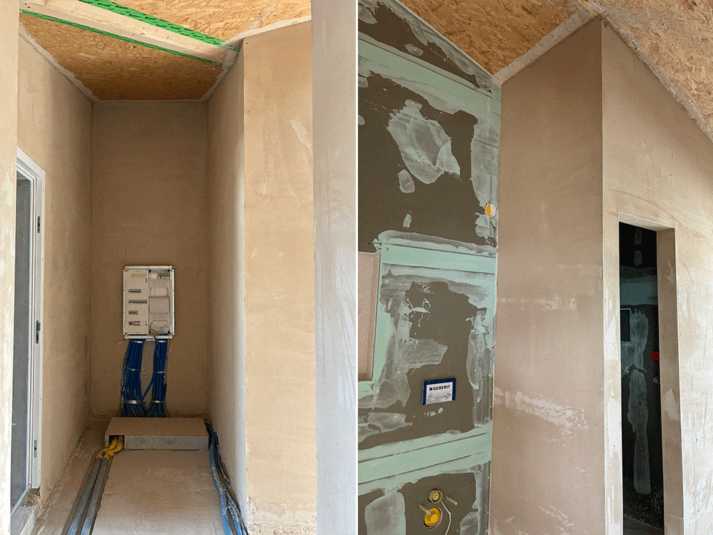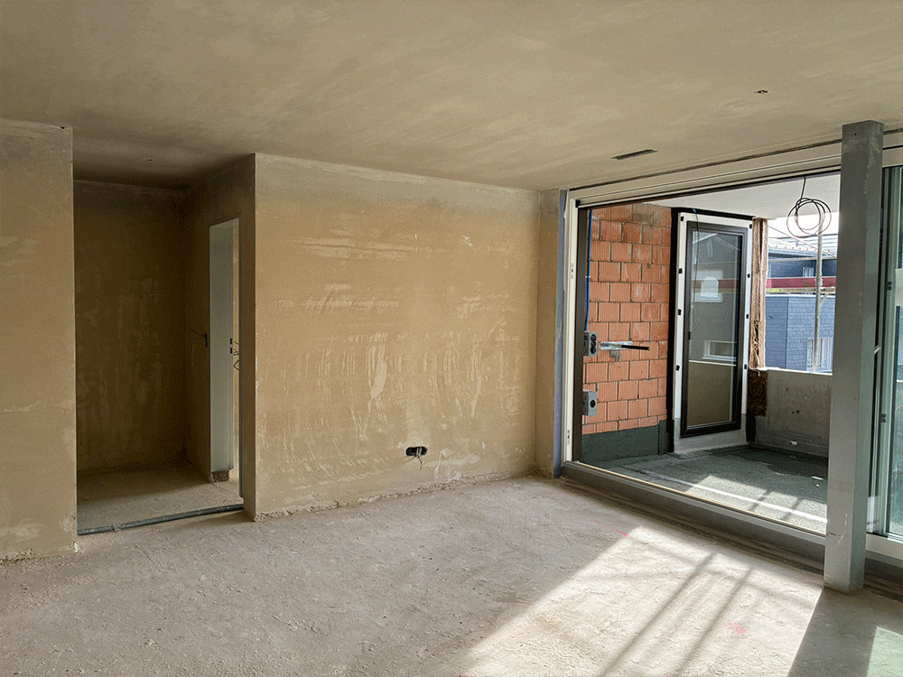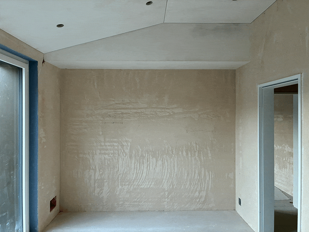 Der Gipser hat nun den Grundputz an den Decken und Wänden erstellt.