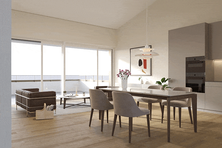 Elegante Architektur, grosszügige Grundrisse, offene Wohn- und Essbereiche, lichtdurchflutet, raumhohe Fenster, geräumige Schlafzimmer, moderne Loggias und Attika-Terrassen mit schöner Fernsicht bestechen ebenso wie der Ausbaustandard mit Parkettböden in Wohn- und Schlafzimmern, Feinsteinzeugplatten in den Nasszellen, modernen Küchen, Waschmaschine-Tumbler etc. Die Kellerabteile und Parkplätze befinden sich im UG und sind alle mit Lift erschlossen.