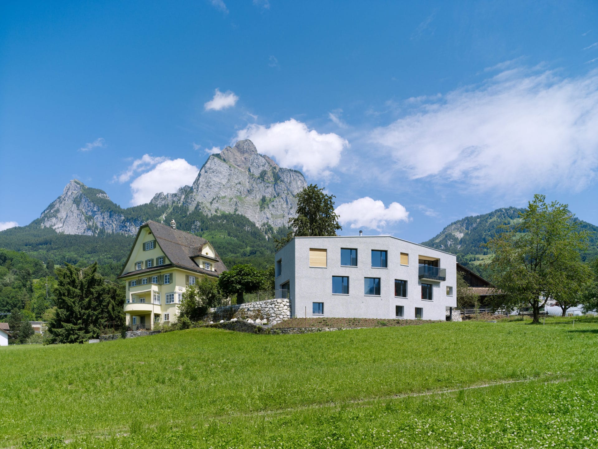 Der Ersatzbau für das Pächterhaus steht eigenständig neben dem ehemaligen Gutshaus und spiegelt in seiner konstruktiven und architektonischen Ausgestaltung eine moderne, zukunftsorientierte Haltung wider. Die biologische Bewirtschaftung des Hofes und Niedrigenergiestandard (Minergie P) mit Nutzungsflexibilität beim Gebäude sind die ideelle Basis.